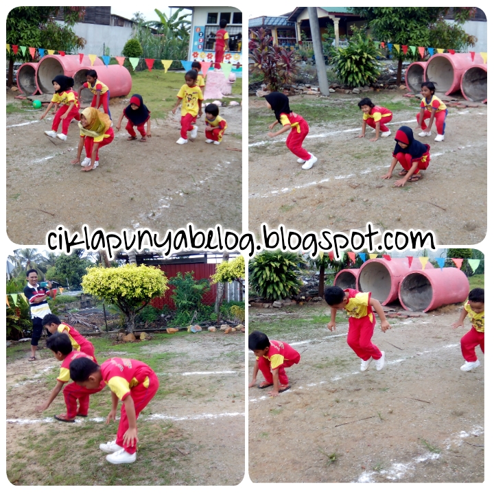 Acara lompat katak. Bersungguh-sungguh benor budak-budak ni melompat. Haha. Lompat tinggi-tinggi ye anak-anak.