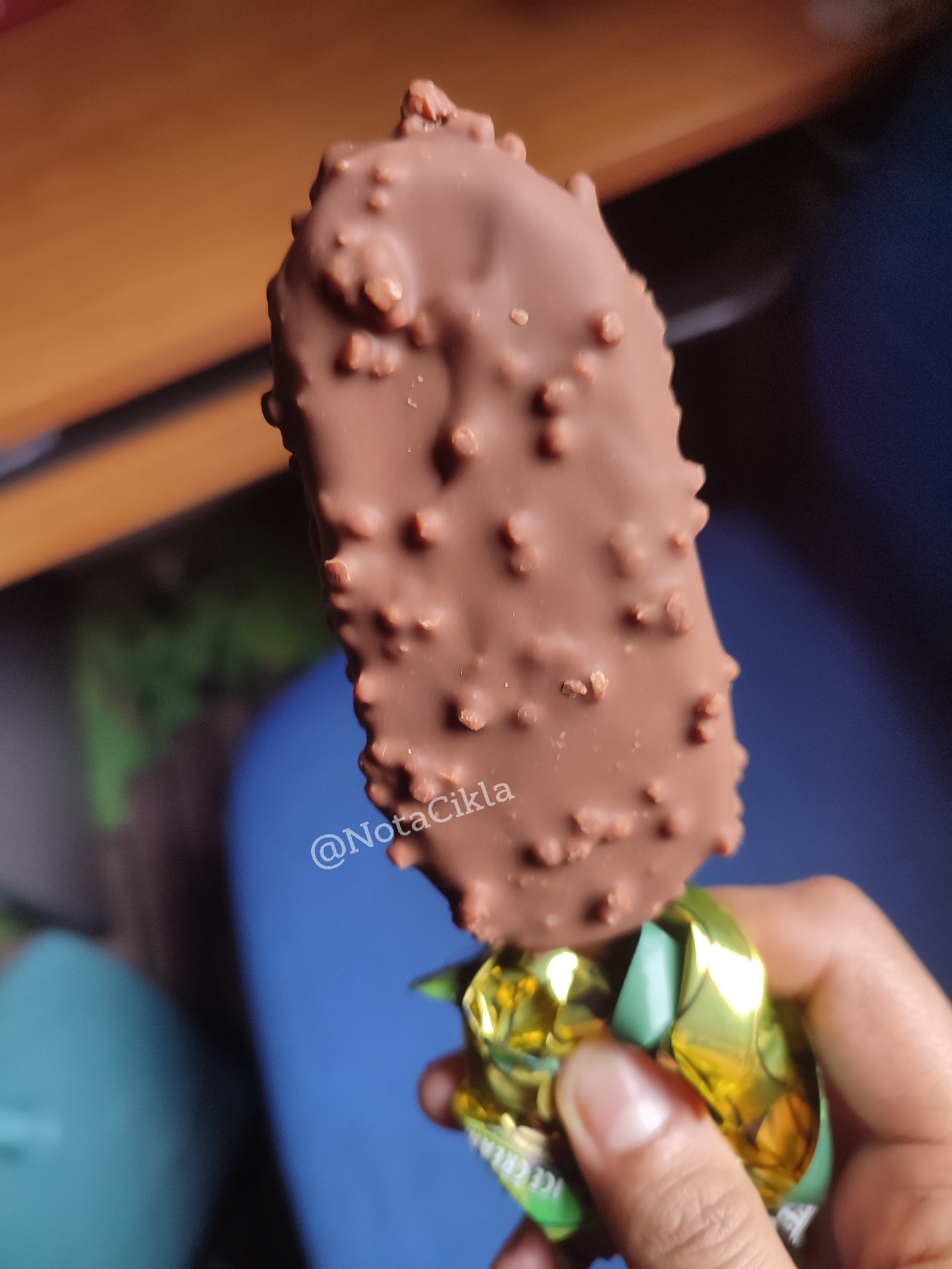 Perghhh, rupa dia macam rasa tak sabar nak gigit kan. Bila gigir crumble ni, rasa macam best je krupp krappp krupp rangup rasa coklat. Isi aiskrim tentunya rasa macha rasa smooth and soft je, lembut dan cair kat mulut. Rasa mtacha dia okey la, takdelah strong sangat kira tengah-tengah, tapi yang buat rasa nak gigit dan gigit lagi tu bila kita makan sekali dengan Belgian Chocolate tu. Penuh je mulut dengan rasa pekat coklat tu. Level kayangan tu. Haha.